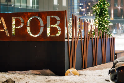 Для террасы был выбран долговечный и устойчивый к внешним воздействиям ДПК (древесно-полимерный композит). В отделке конструкции применялась сталь Кортен — уникальный материал, который при коррозии формирует защитный слой, значительно увеличивая срок службы. Также в проекте использовались металл и лиственница, что добавило натуральности и прочности.
