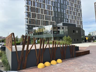 В данном проекте перед нами стояла цель кардинально преобразить внешний вид инженерного сооружения, сделав его не только эстетичным и привлекательным, но и функциональным. Важными требованиями были обеспечение свободного доступа к коммуникациям для спецслужб, использование вандалоустойчивых материалов и монтаж обшивки без механического крепления к самому сооружению. Также нужно было грамотно решить проблему перепада по высоте.