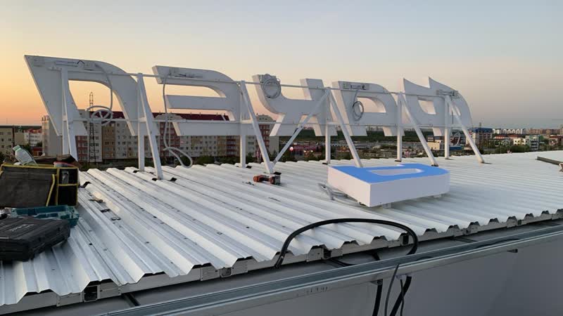 Реализация проекта начиналась с детальных проектных работ, включая разработку конструктивных решений и точный расчет нагрузок на металлический каркас, что особенно важно для безопасности и долговечности конструкции. Завершающим этапом стала профессиональная установка на объекте с использованием спецтехники и высококвалифицированной группы монтажников-высотников, что гарантировало качественный и безопасный монтаж вывесок.